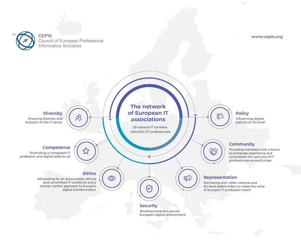 Consiliul Societăților Europene de Informatică Profesională (CEPIS) este organismul reprezentativ al asociațiilor naționale de informatică din întreaga Europă. Înființată în 1989 de 9 societăți europene de informatică, CEPIS a crescut de atunci pentru a reprezenta profesioniștii IT în 29 de țări.